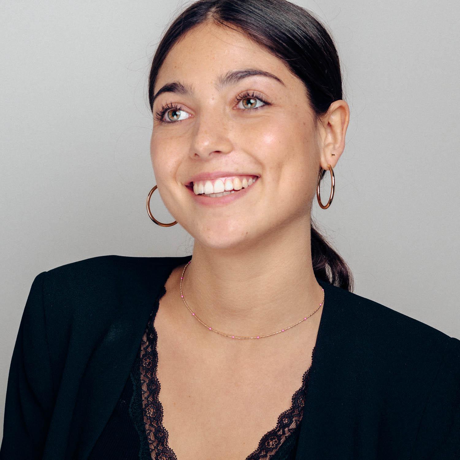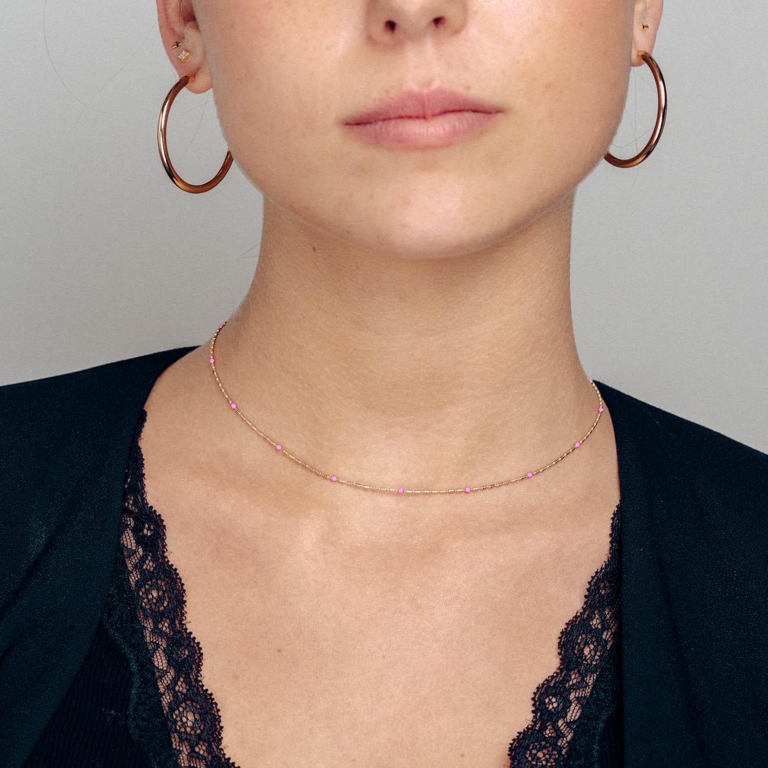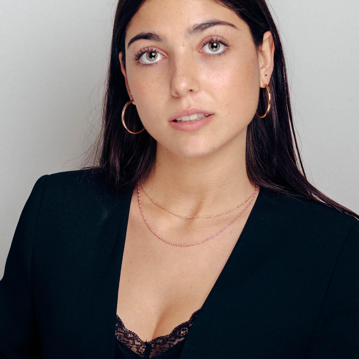 Zinnia, collar inspirado en la flor de loto. Según la mitología griega, el significado de esta flor surge de una diosa que cayó en un lugar oscuro llamado Loto y logró salir como una hermosa flor. Por eso, este colgante simboliza el triunfo después de haber luchado contra el fracaso.
