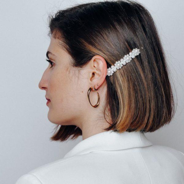 Horquilla para el pelo con detalle de perlas. Un complemento fino y sofisticado, que dará un aire elegante a tu look.