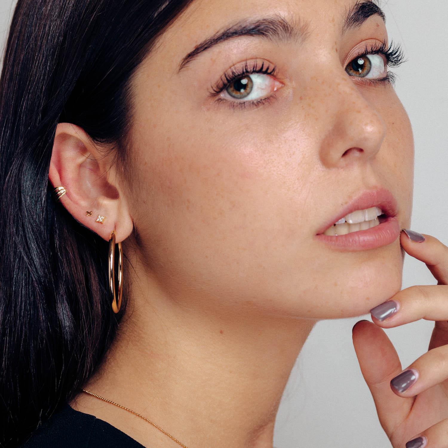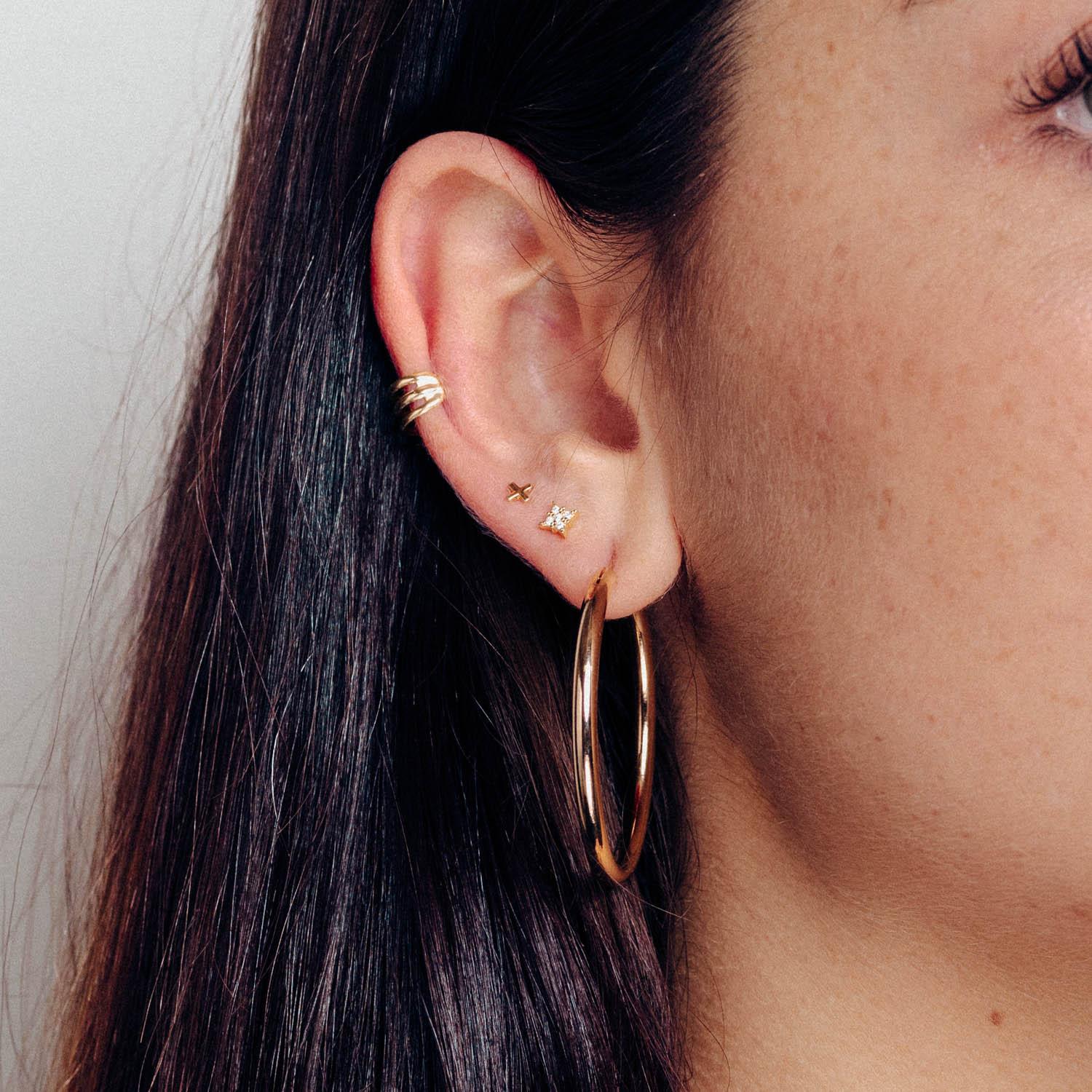 Pendientes con forma de aro de la colección de Patry Jordan. Son pendientes bañados en oro, elegantes y básicos que no deben faltar en tu colección.